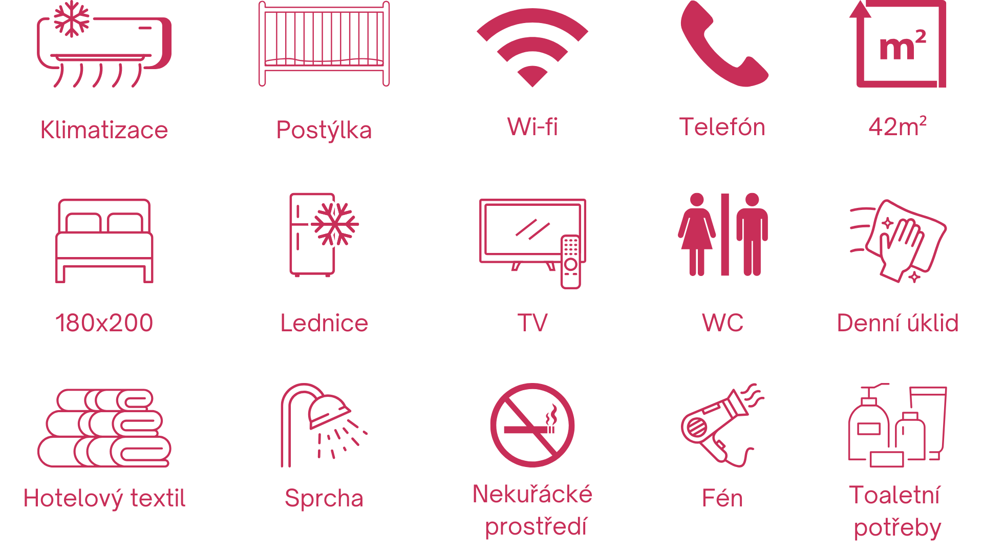 Apartmán SUPERIOR je naším největším a nejluxusnějším ubytováním, ideálním pro ty, kteří hledají maximální komfort a exkluzivitu. Tento prostorný apartmán je vybaven moderním nábytkem a nabízí velkorysý prostor pro odpočinek i práci. Hosté se mohou těšit na pohodlné postele, elegantní obývací část s TV, klimatizaci, rychlý internet a množství dalších vymožeností, které zajišťují dokonalý pobyt.